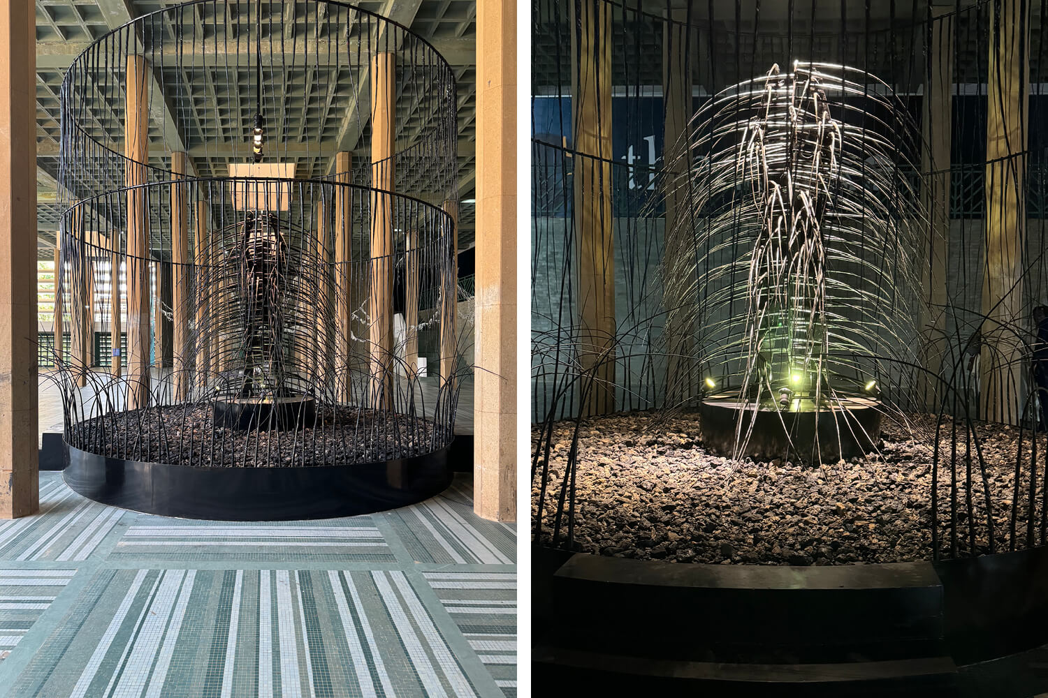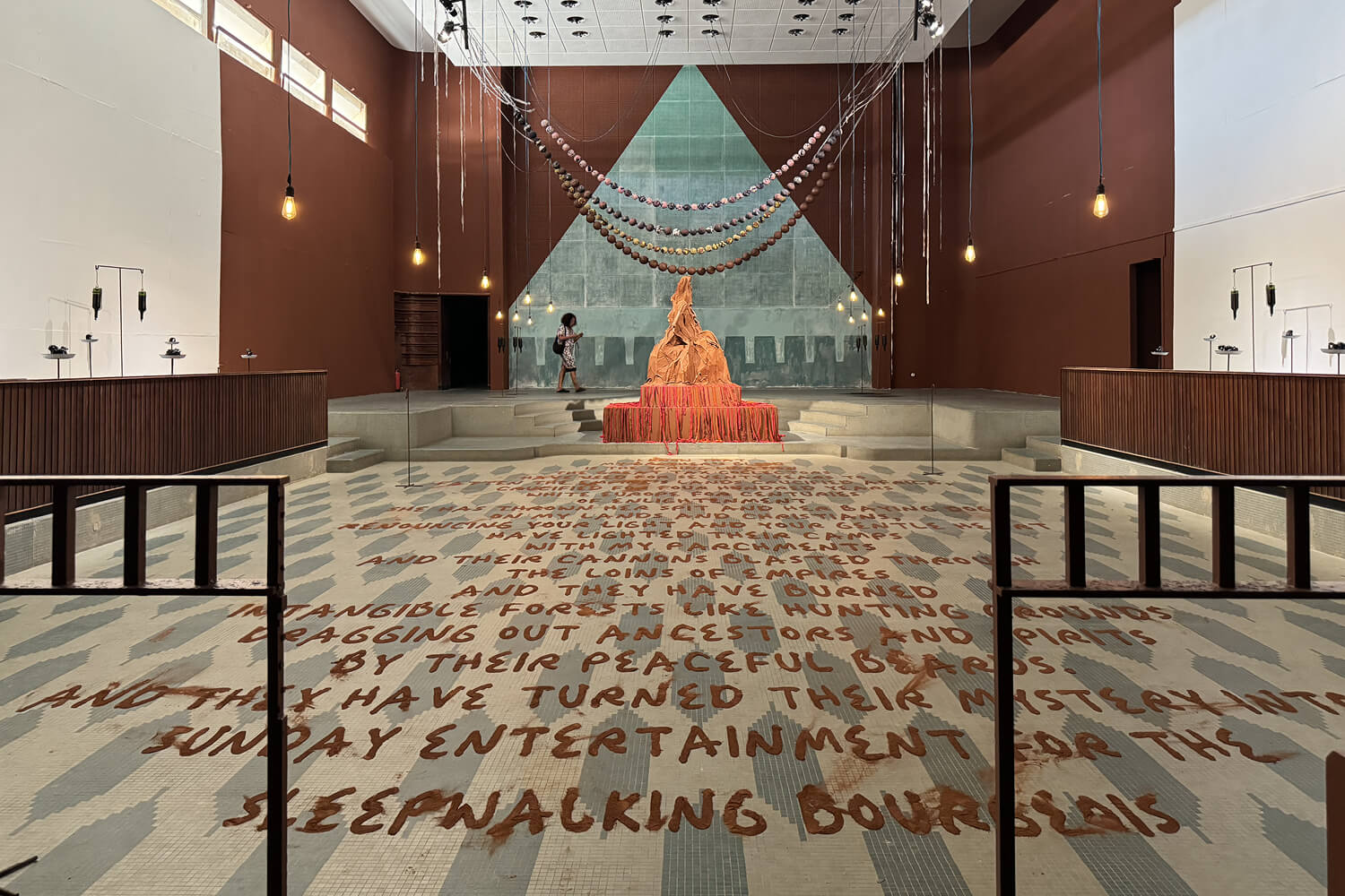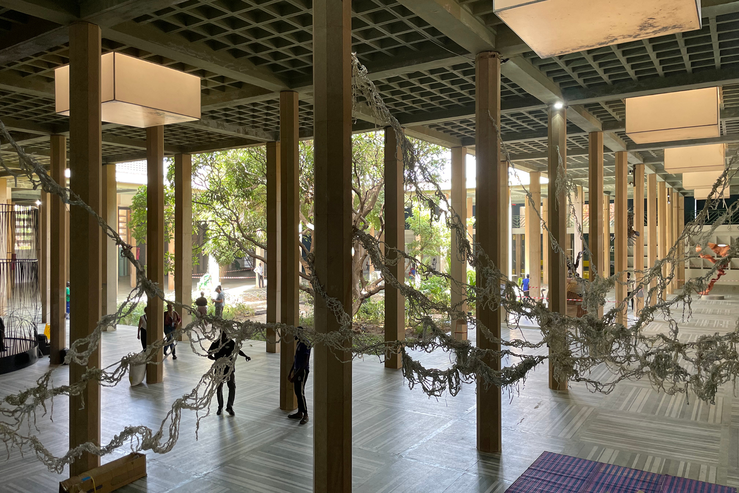 En investissant des lieux encore inexplorés de l’Ancien Palais de Justice de Dakar, notre scénographie propose un parcours inédit qui permet de plonger le visiteur dans une narration et des univers spécifiques portés par la thématique The wake.